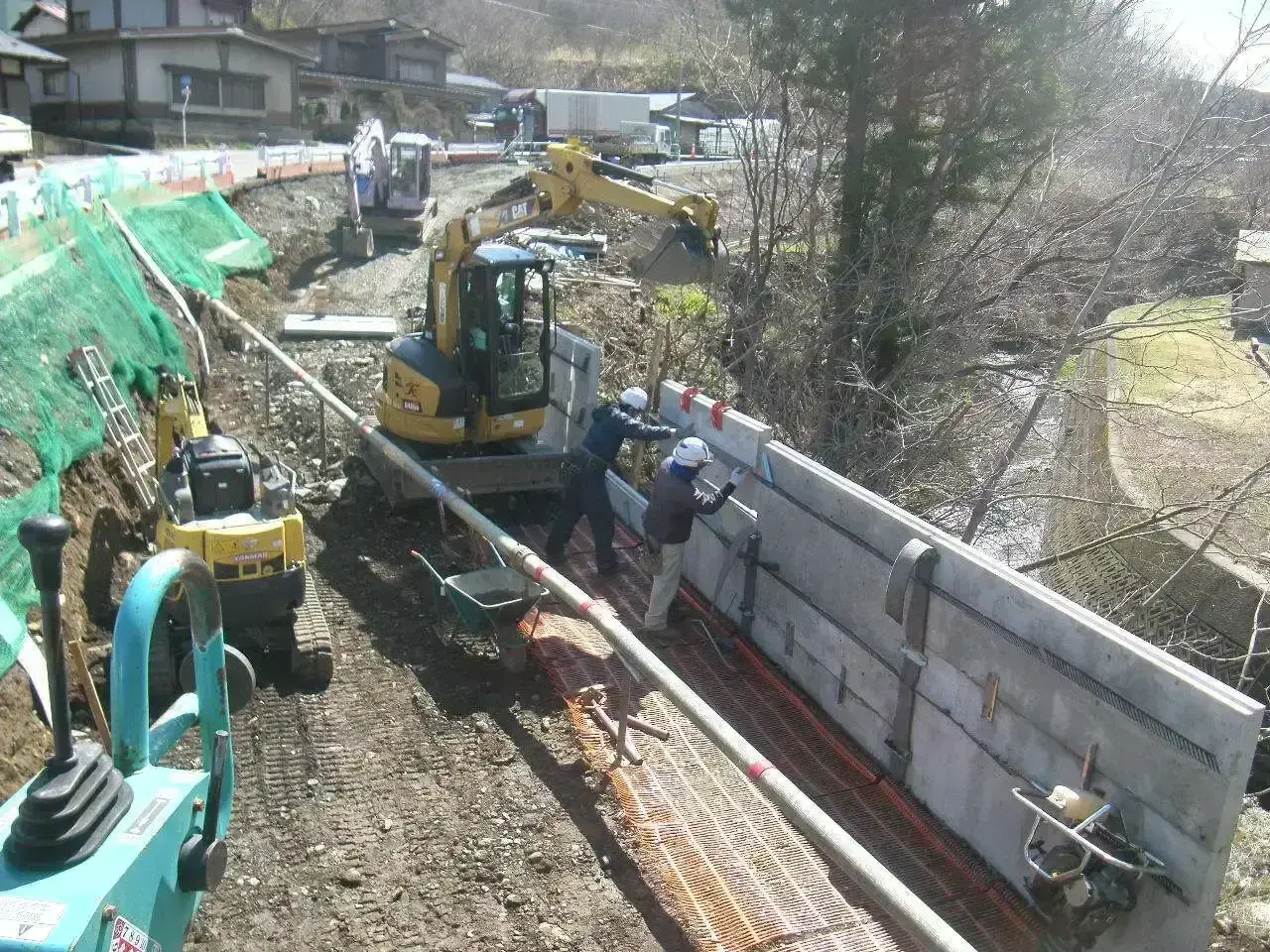 昭和建設工業では主にインフラにも関わる土木工事や電気通信工事などを手掛けています。また、土木工事・電気通信工事以外にも、とび土工工事や管工事、舗装工事、水道施設工事などにも携わっております。